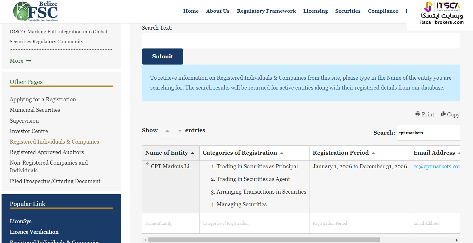 بروکر CPT Markets تحت رگوله آفشور IFSC بلیز و AOFA آنژوان به مشتریان ایرانی خود سرویس می دهد.