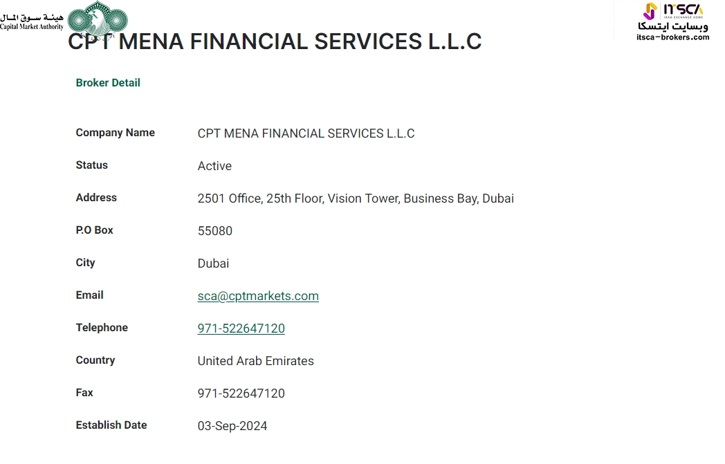 بروکر سی پی تی مارکتس CPT Markets یکی دیگر از بروکر های فارکس است که در سال 2008 در لندن تأسیس شده است. این بروکر رگوله های خوبی دارد از جمله: مرجع مالی (FCA) در بریتانیا سطح یک و به شماره تأیید 606110، مرجع مالی (FSCA) در آفریقای جنوبی (سطح دو) و به شماره مجوز 2014 / 214730 / 07، سازمان اوراق بهادار امارات (SCA) سطح دوم به شماره لایسنس 20200000245، مرجع مالی آنژوان (AOFA) سطح پنجم به شماره لایسنس L15643 و کمیسیون خدمات مالی ( IFSC) در بلیز (سطح پنج) و به شماره FSC000314/17 .